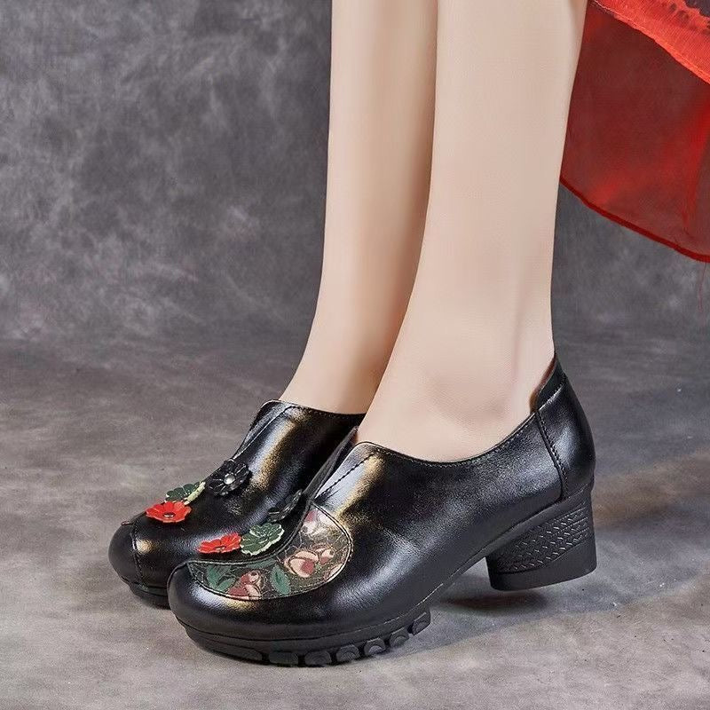 Zapatos retro de piel con tacón grueso